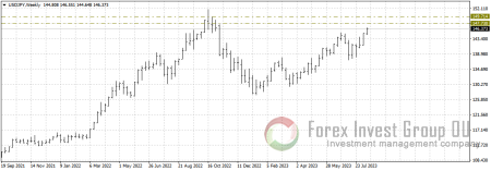 Ястребиный настрой ФРС способствовал усилению покупательских настроений в паре usd/jpy. Пара стремительно обновила максимум текущего года у 145.00 и продолжает рост в направлении экстремумов 2022 года у диапазона 151.00-148.00. В приоритете покупки после отката к указанным уровням, отмену восходящего сценария рассматриваем только после уверенного закрепления ниже 145.00.