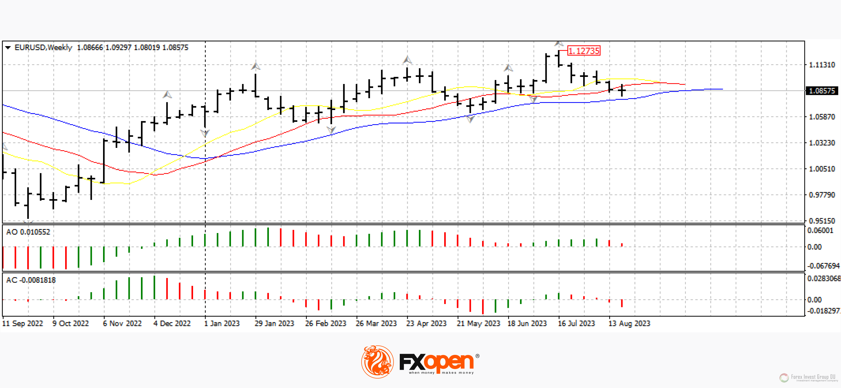 FxSignal 24-08-2023, 13:00 491 Аналитика, прогнозы валютного рынкаОсновные валютные пары торгуются вблизи ранее достигнутых экстремумов в ожидании новостей из США. Так, валютная пара eur/usd вчера опускалась к 1.0800, но резко отскочила назад, пара gbp/usd протестировала поддержку у 1.2600, но все же осталась выше линий аллигатора на недельном таймфрейме, а usd/jpy повторно тестирует 145 фигуру. Судя по всему инвесторы и участники рынка ждут комментариев от главы ФРС по поводу дальнейшей кредитно-денежной политики регулятора. Завтра стартует ежегодный симпозиум в Джексон Хоуле, где будет заслушан доклад Джерома Пауэлла.