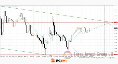 Ближайшее сопротивление можно увидеть на отметке 1,2218, прорыв вверх может спровоцировать рост к 1,2261. При падении ближайшая поддержка видна на отметке 1,2099 (23,6% Фибо), прорыв ниже может привести пару к 1,2051.