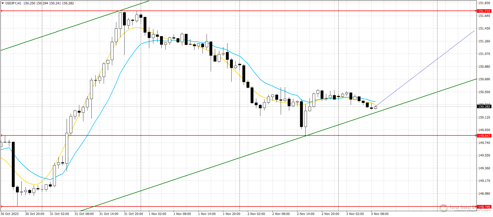Пара USD/JPY показывает слабое снижение, развивая коррекционную динамику, сформированную 1 ноября, когда доллар отступил от рекордных максимумов вблизи отметки 151.60. Сильное сопротивление можно увидеть на отметке 150,43, прорыв вверх может спровоцировать рост к 151,00. С другой стороны, ближайшая поддержка видна на отметке 149,96. Прорыв ниже может привести пару к 149,37.