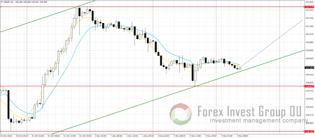 Пара GBP/USD тестирует отметку 1.2000, продемонстрировав довольно активный рост накануне, в результате чего были обновлены локальные максимумы от 24 октября, однако затем «быки» быстро растеряли инициативу. Ближайшее сопротивление можно увидеть на отметке 1,2218, прорыв вверх может спровоцировать рост к 1,2251. При падении ближайшая поддержка видна на отметке 1,2159, прорыв ниже может привести пару к 1,2121.