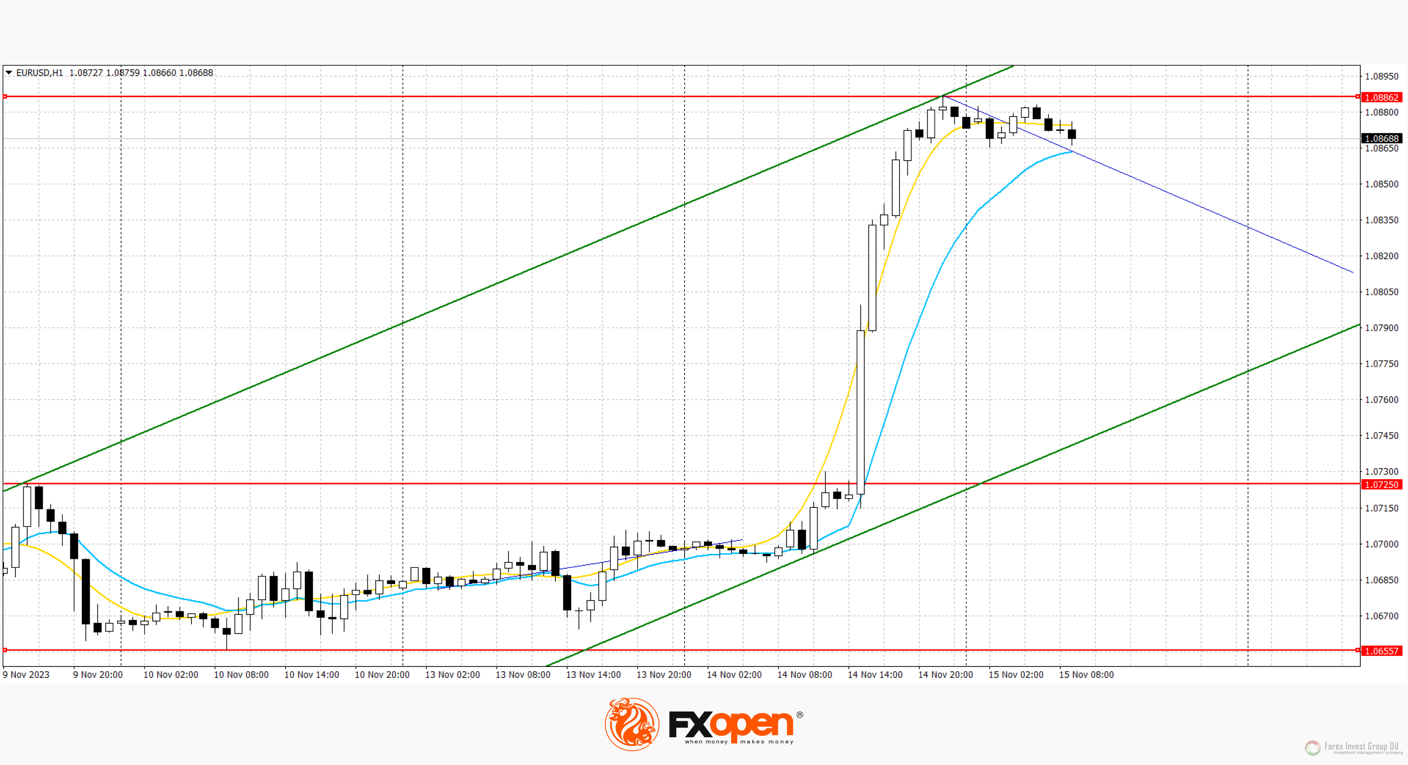 FxSignal 15-11-2023, 15:00 605 Аналитика, прогнозы валютного рынкаНа рынке преобладают коррекционные настроения, поскольку участники торгов фиксируют прибыль по длинным позициям на фоне стремительного снижения доллара США после публикации октябрьской статистики по инфляции. Так, индекс потребительских цен в октябре показал нулевую динамику в месячном исчислении, тогда как аналитики ожидали роста на 0,1%, а в предыдущем периоде значение составляло 0,4%. В годовом выражении показатель замедлился с 3,7% до 3,2%, что оказалось ниже ожиданий на уровне 3,3%, а базовая инфляция скорректировалась с 0,3% до 0,2% и с 4,1% до 4,0%, соответственно. Опубликованные данные подтвердили предположение инвесторов в том, что ФРС США не станет повышать стоимость заимствований ни в текущем, ни в следующем году. При этом эксперты отмечают, что о возможных сроках начала цикла снижения процентной ставки говорить пока несколько преждевременно. Приближение инфляции к целевым уровням ФРС США было расценено как очередной сигнал к завершению цикла ужесточения денежно-кредитной политики. Реальная макроэкономическая статистика имеет более важное значение для рынка, чем «ястребиные» заявления главы регулятора Джерома Пауэлла, который на прошлой неделе вновь заявил о потенциальной возможности повышения стоимости заимствований.