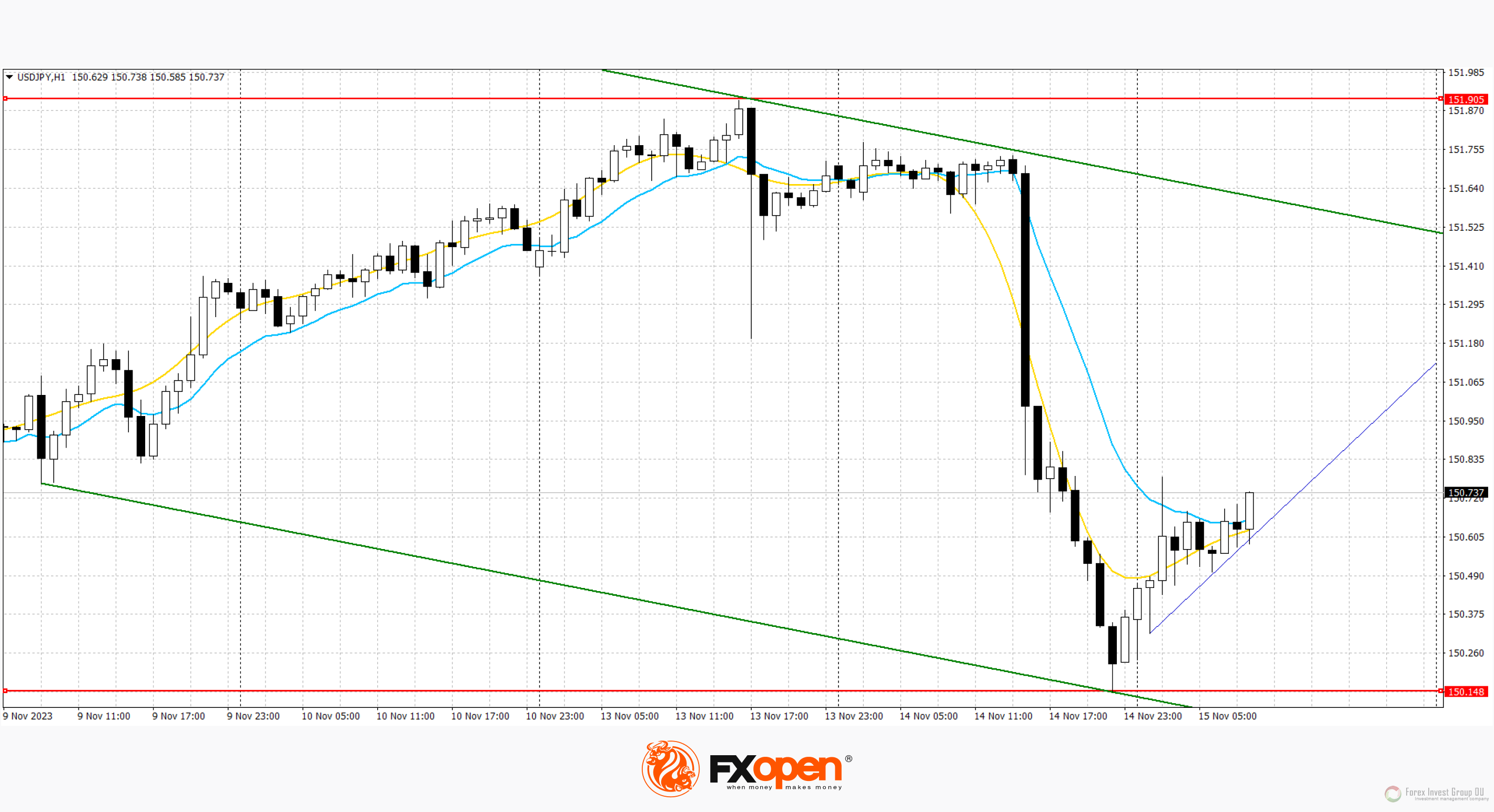 Пара USD/JPY удерживается в районе 150.70, восстанавливаясь после резкого коррекционного снижения накануне. Позиции американской валюты оказались под давлением после публикации октябрьской статистики по потребительской инфляции, которая замедлилась сильнее прогнозов аналитиков.