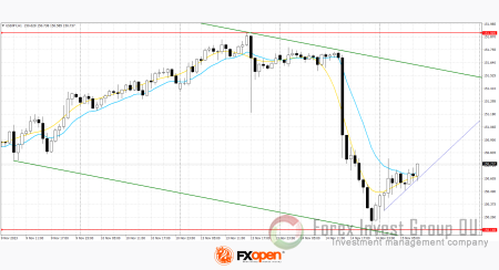 По недавним минимумам сформировался новый нисходящий канал. Сейчас цена отошла от нижней границы и может продолжить рост.