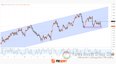 При этом индикатор Stoch RSI опустился в зону перепроданности. С точки зрения технического анализа, на графике заметны предпосылки для формирования отскока. Если он будет достаточно сильный, цена сможет достичь сопротивления 1.375.