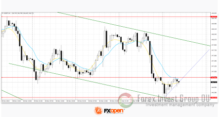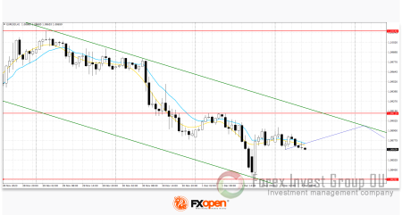 По минимумам двух дней прошлой недели сформировался новый нисходящий канал. Сейчас цена отошла от нижней границы канала и может продолжить рост.
