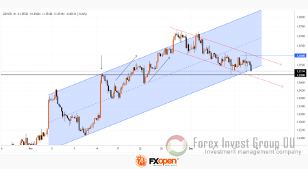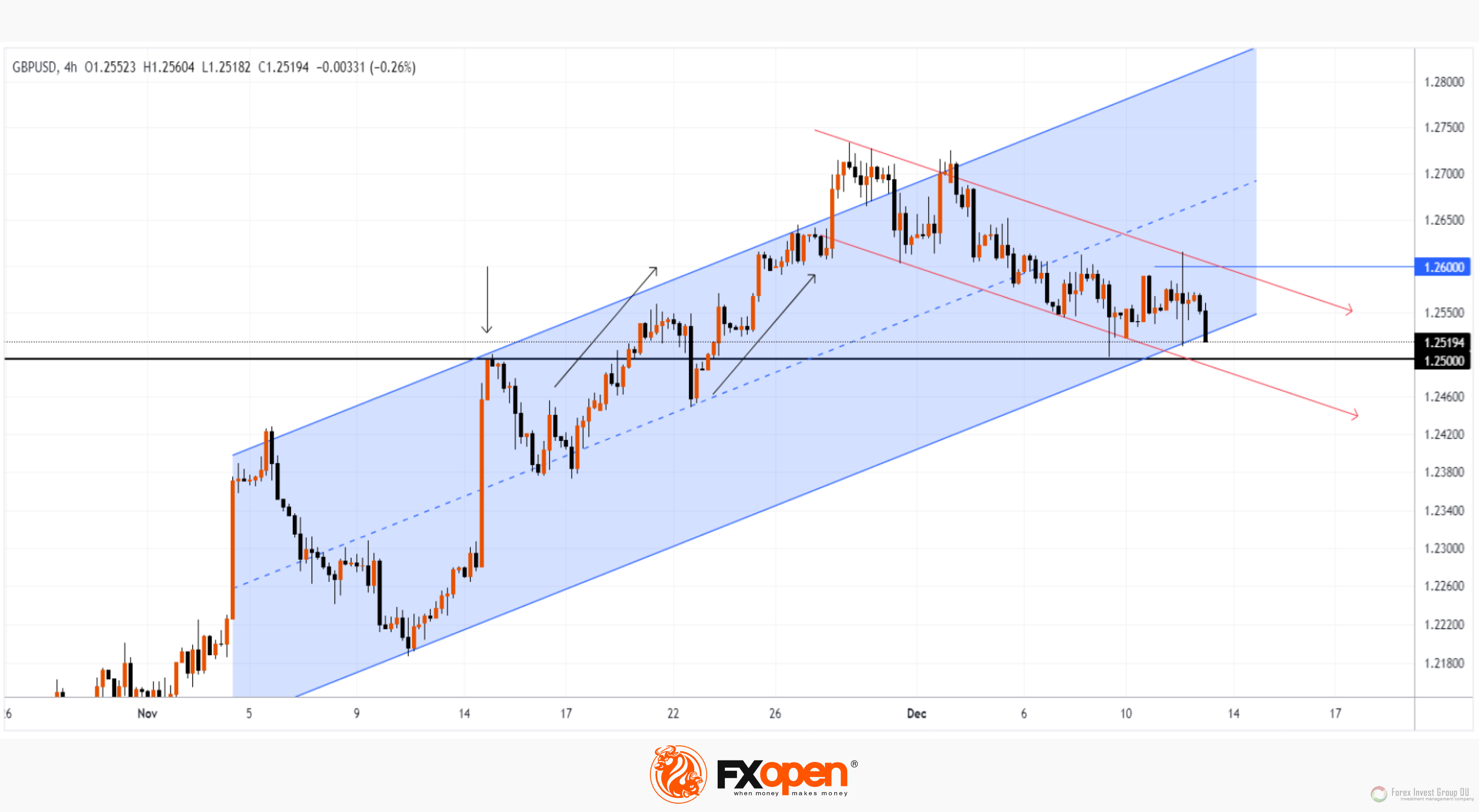 Если цена закрепится ниже 1.25, это может означать важное изменение настроений в поведении рынка и повышение вероятности медвежьего сценария, на который указывают красные стрелки.