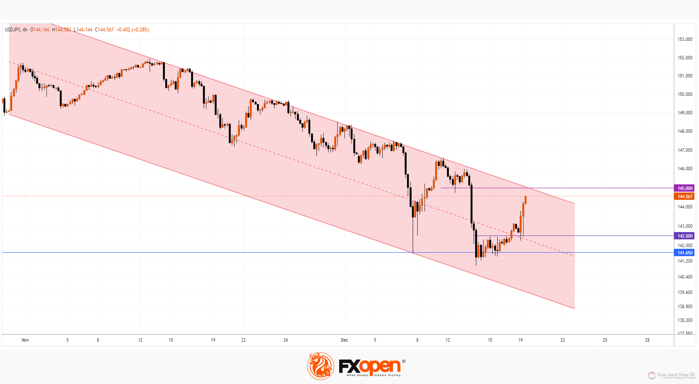 → Нижняя граница канала оттолкнула цену вверх 7 декабря, обозначив поддержку 141,65.