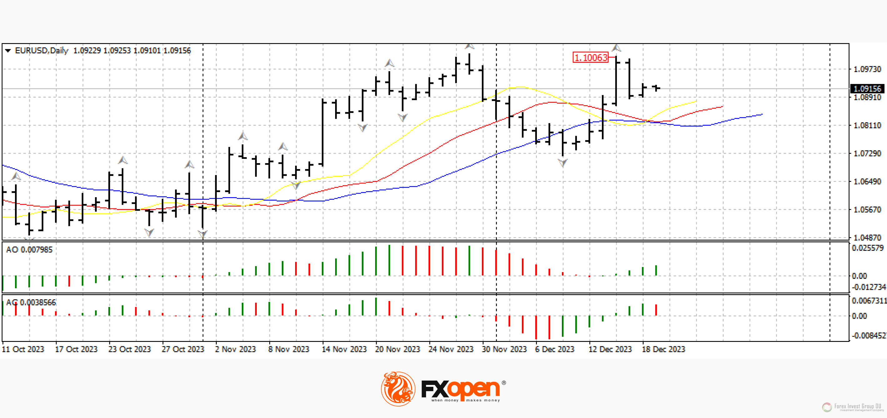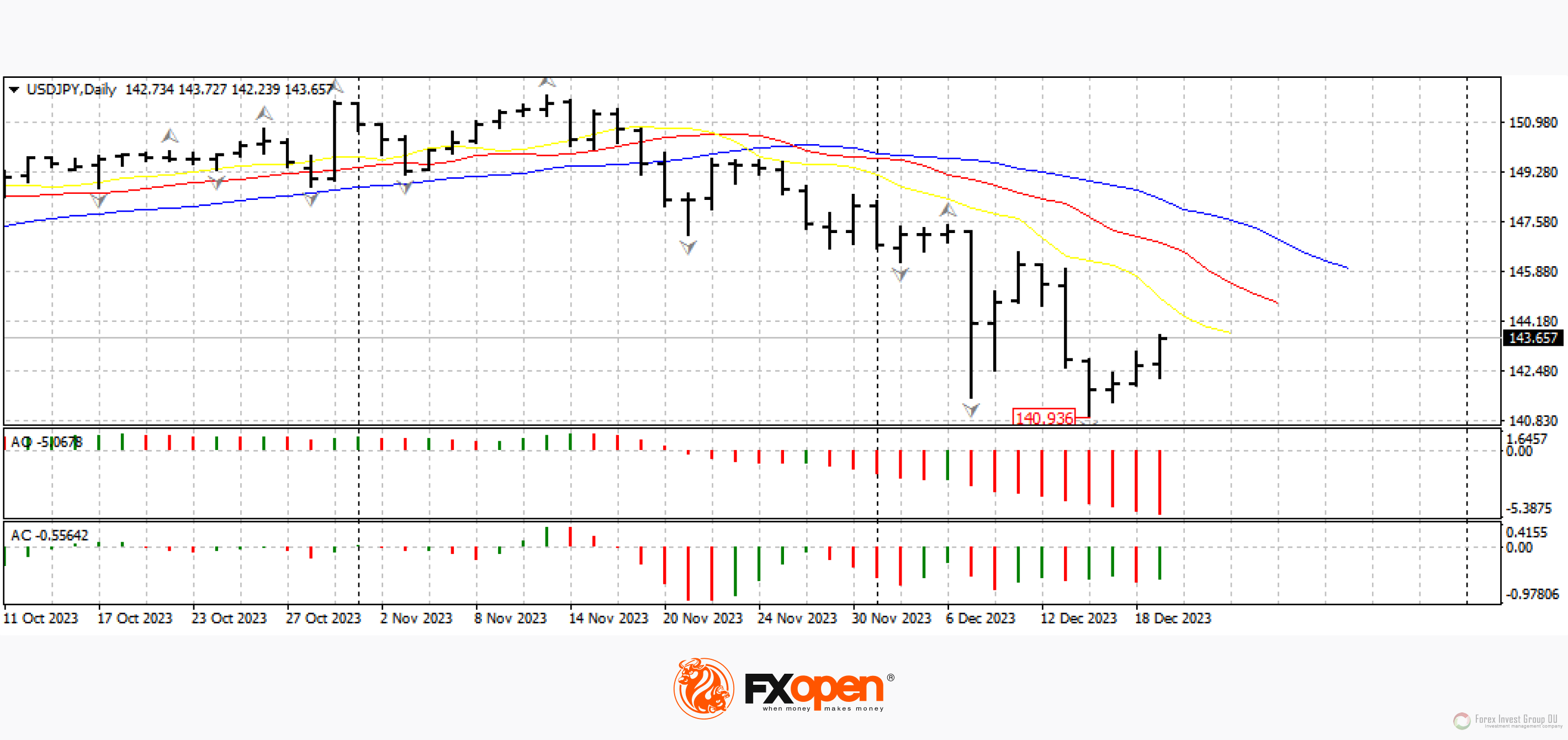 FxSignal 19-12-2023, 15:00 397 Аналитика, прогнозы валютного рынкаРезкое снижение американской валюты, которое мы наблюдали после заседания ФРС, немного замедлилось к концу прошлой недели. Так, валютная пара фунт/доллар отскочила от 1.2700, пара евро/доллар консолидируется после теста 1.1000, а покупатели пары доллар/иена нащупали поддержку чуть ниже 141.00.