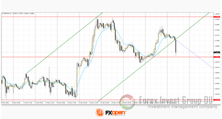 Цена пробила нижнюю границу восходящего канала и может продолжить снижение.