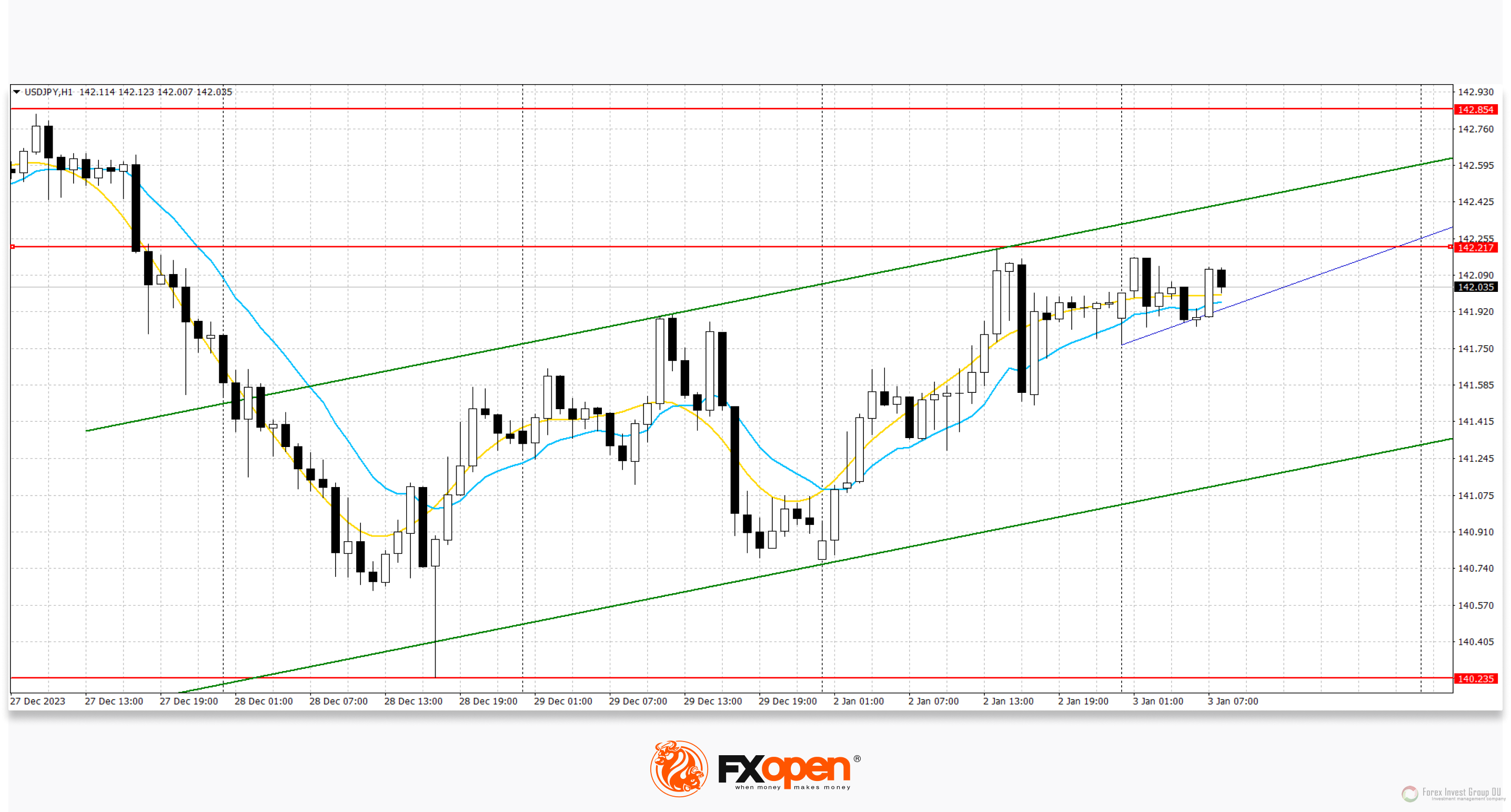 Пара USD/JPY показывает смешанную динамику, удерживаясь вблизи отметки 142.00. Участники торгов не спешат открывать новые позиции в преддверии публикации декабрьских протоколов заседания ФРС США. В Японии в конце недели будут опубликованы декабрьские данные по индексу деловой активности в производственном секторе от Jibun Bank, а также по индексу потребительского доверия. В США в пятницу в центре внимания окажется декабрьская статистика по рынку труда: предполагается замедление динамики количества новых рабочих мест, созданных национальной экономикой вне сельскохозяйственного сектора, со 199 тыс. до 168 тыс, а также рост уровня безработицы с 3,7% до 3,8% и снижение средней почасовой заработной платы с 4,0% до 3,9%.