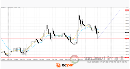 В течение прошлой недели сформировался торговый диапазон с границами 1,2610 и 1,2770. Сейчас цена находится посредине диапазона и может продолжить рост.