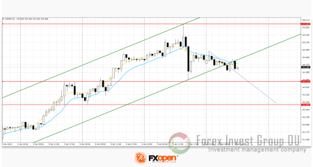 Цена пробила нижнюю границу восходящего канала и может продолжить снижение.
