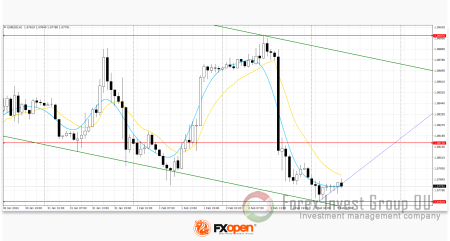 По минимумам прошлой недели сформировался новый нисходящий канал. Сейчас цена отскочила от нижней границы и может продолжить рост.