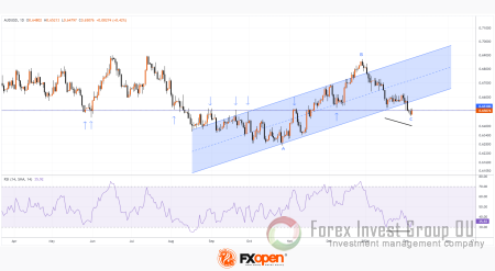 → не исключено, что быки попытаются развить успех и вернуть цену AUD/USD в область восходящего канала (показан синим цветом), который берет начало осенью прошлого года.