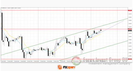 Технический анализ EUR/USD показывает, что по максимумам двух дней прошлой недели сформировался новый восходящий канал. Сейчас цена находится посредине канала и может продолжить рост.