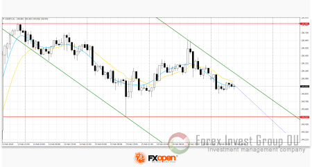 По максимумам двух дней прошлой недели сформировался новый нисходящий канал. Сейчас цена движется вниз вдоль верхней границы канала.