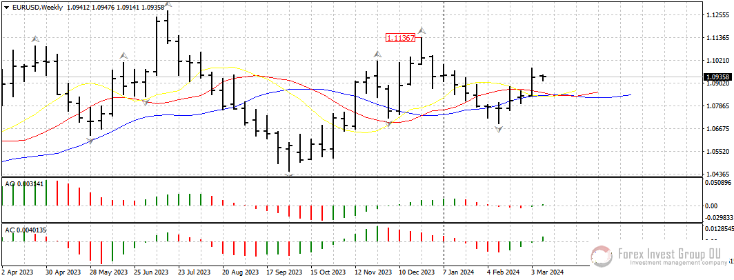 На прошлой неделе покупателям единой европейской валюты удалось укрепить пару eur/usd больше чем на 150 пп. Технический анализ EUR/USD показывает, что на дневном и недельном таймфрейме цена выше линий аллигатора, при соответствующем фундаментальном фоне пара может протестировать психологический уровень сопротивления у 1.1000.