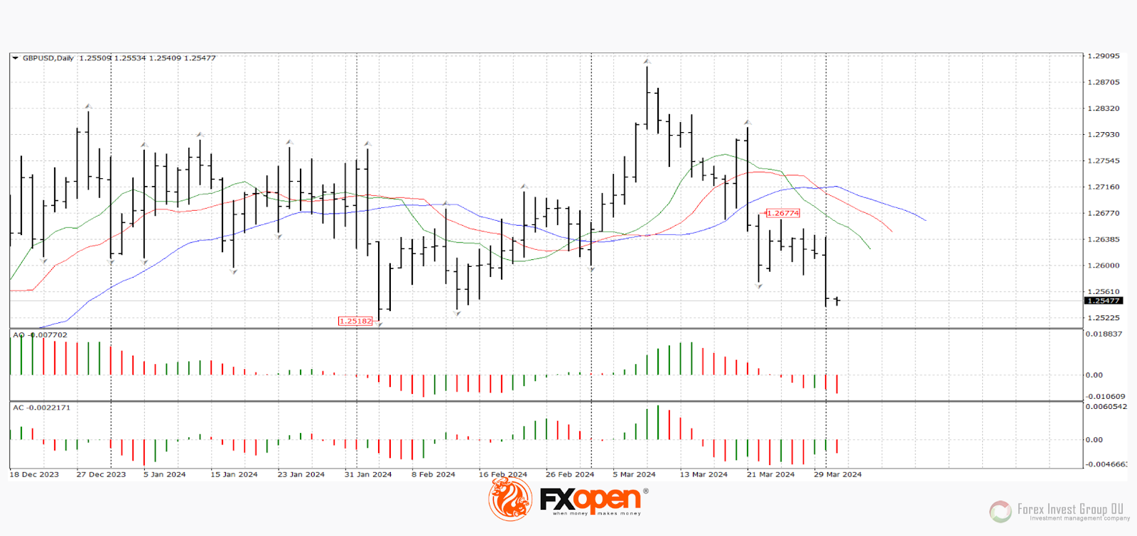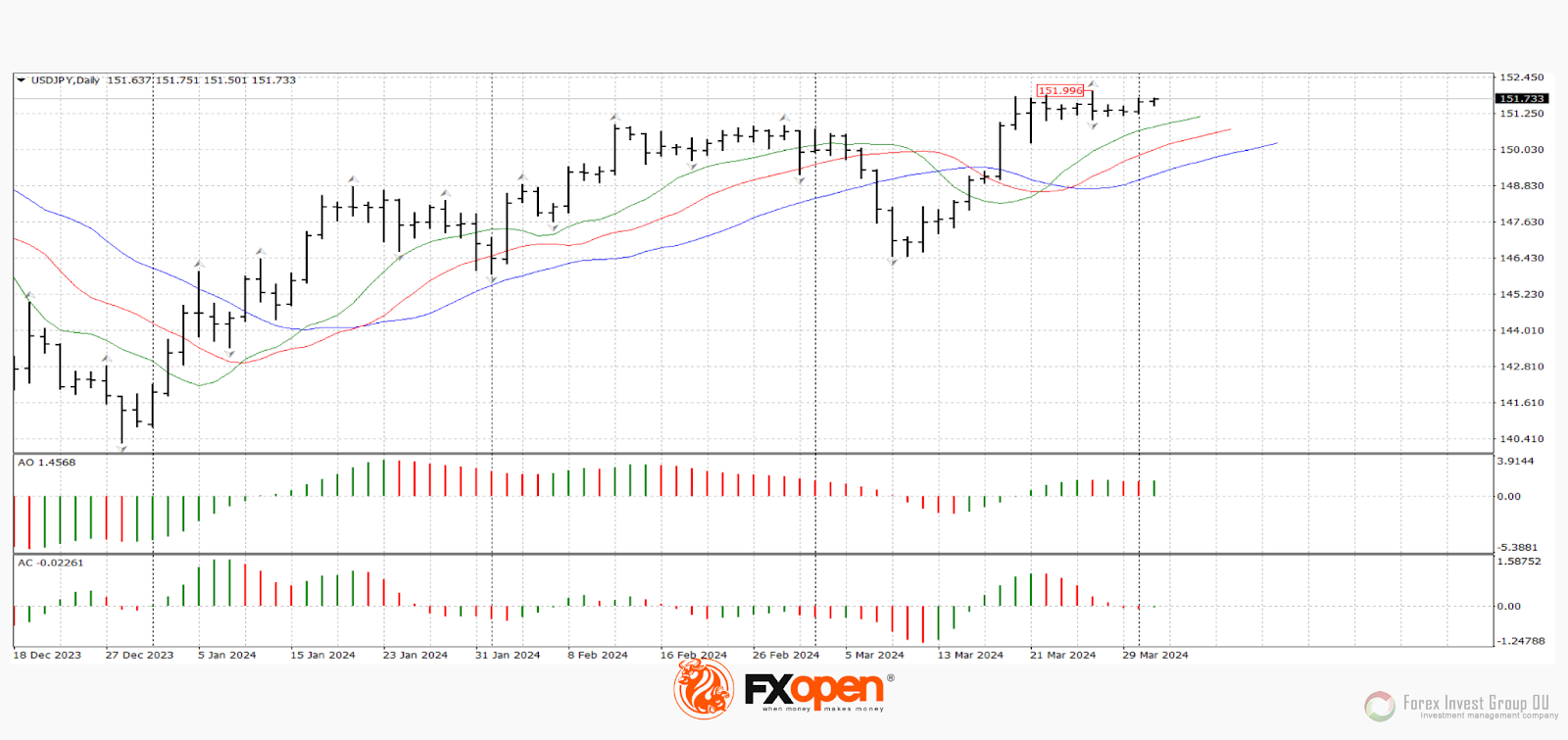 FxSignal 2-04-2024, 13:00 400 Аналитика, прогнозы валютного рынкаСлабая волатильность на рынке, связанная с празднованием католической Пасхи, и сильный фундамент из США способствовали резкому укреплению доллара к сырьевым и европейским валютам. Так, валютная пара фунт/доллар торгуется ниже ключевой поддержки у 1.2600, продавцы евро готовятся тестировать 1.0700, а пара доллар/иена максимально близка к недавним экстремумам у 152.00.