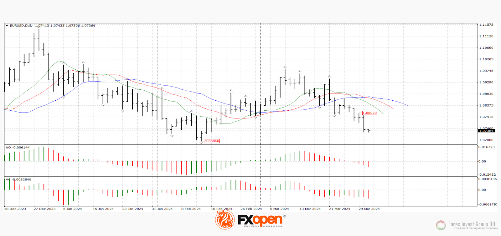 Готовится тестировать февральские минимумы и единая европейская валюта. Технический анализ eur/usd показывает, что пара продолжает нисходящий тренд. В случае ухода ниже 1.0700 цена может протестировать важный диапазон 1.0500-1.0400.