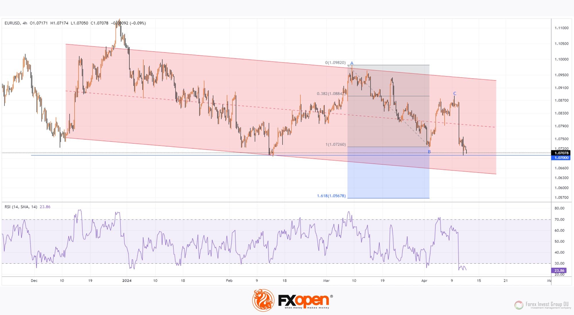 → на пути медведей находятся поддержка 1.0700 и нижняя граница канала.