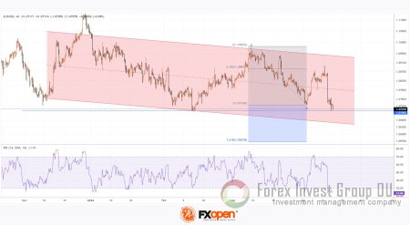 → курс EUR/USD демонстрирует нисходящую динамику в 2024 году (показана каналом красного цвета);