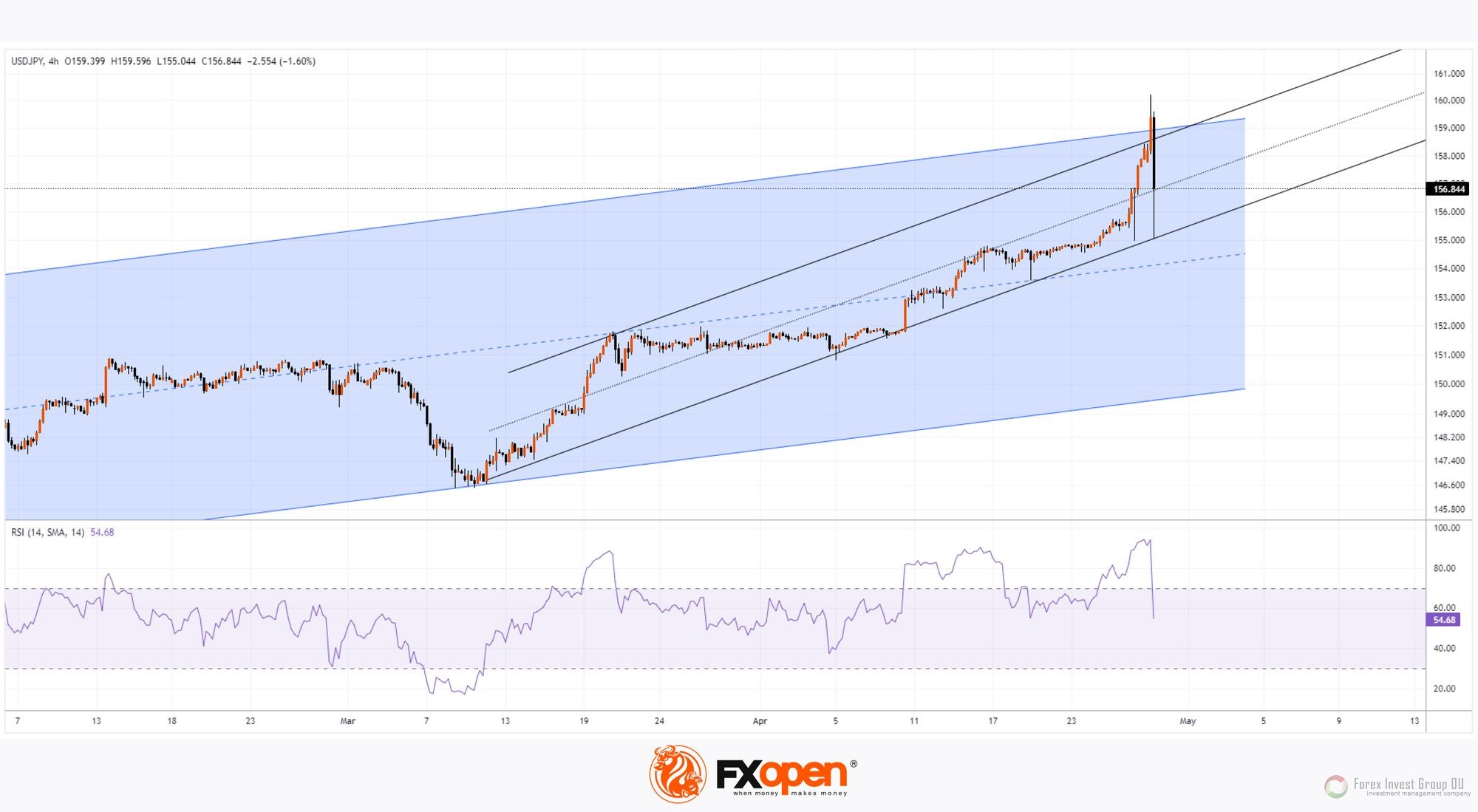 USD/JPY: Курс стремительно упал после превышения психологической отметки в 160