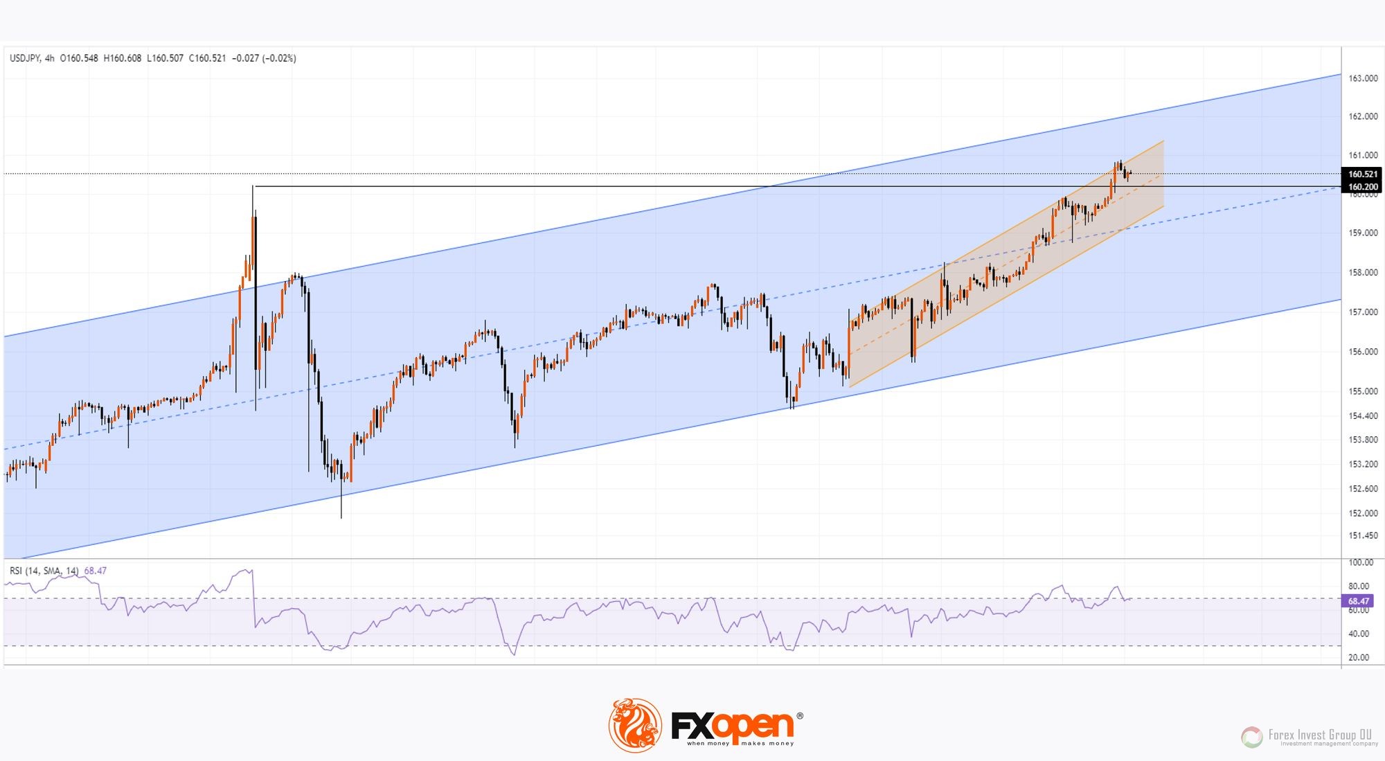 FxSignal 28-06-2024, 15:00 379 Аналитика, прогнозы валютного рынкаКак свидетельствует график USD/JPY, сегодня курс находится в районе 160.58 иен за доллар США.
