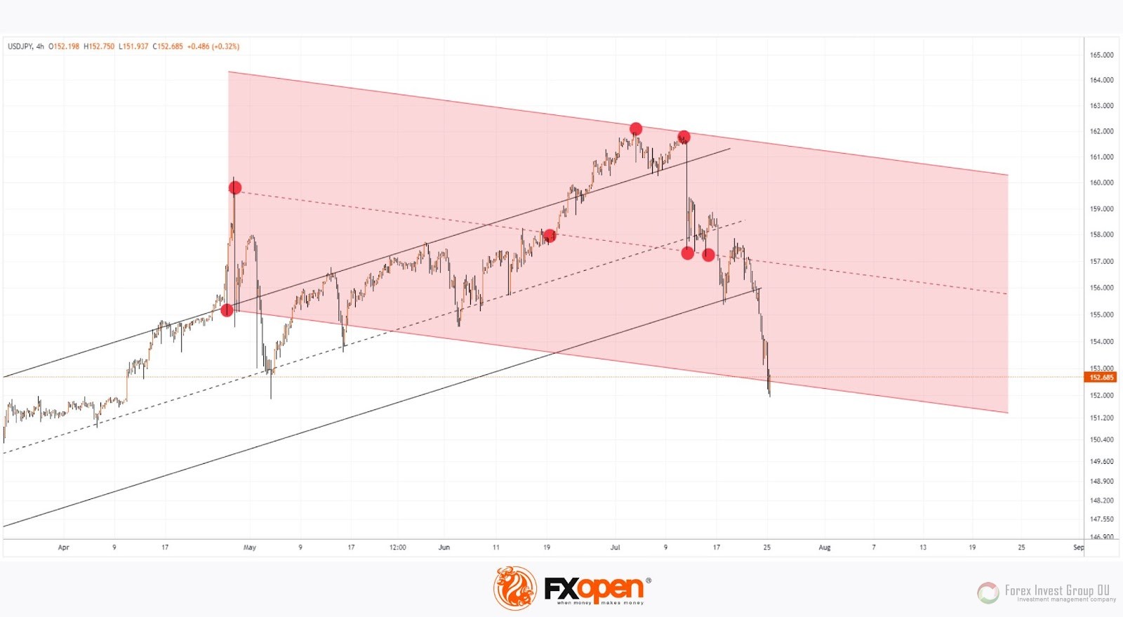 FxSignal 25-07-2024, 15:00 376 Аналитика, прогнозы валютного рынкаВ четверг, 11 июля, курс USD/JPY находился выше уровня 161, а сегодня – ниже уровня 153.