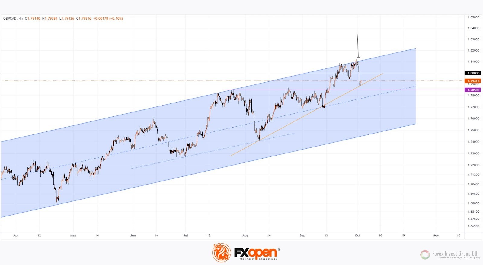 Анализ GBP/CAD: Цена опустилась ниже уровня 1.800
