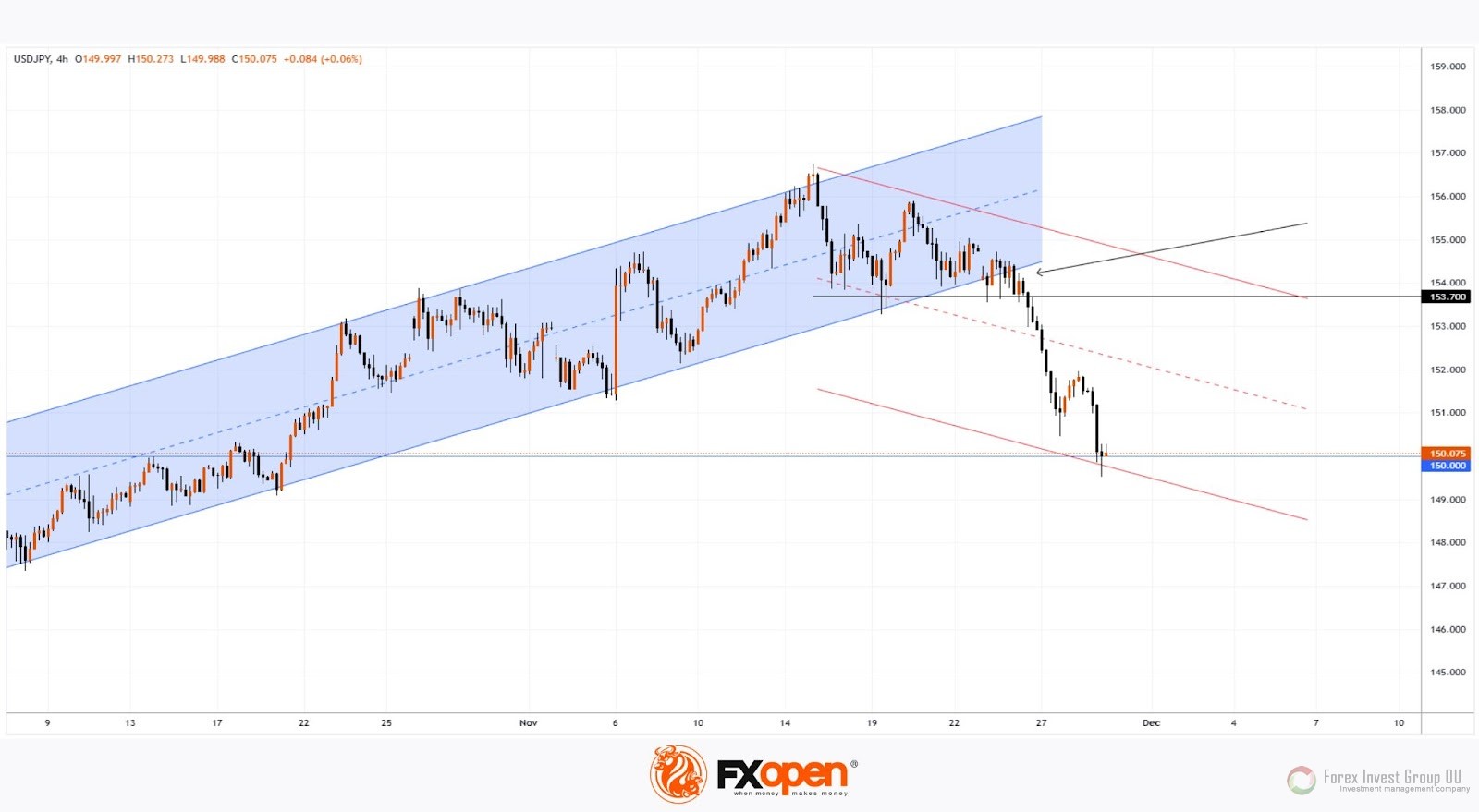 Анализ графика USD/JPY: Медведи атакуют уровень 150 иен за доллар