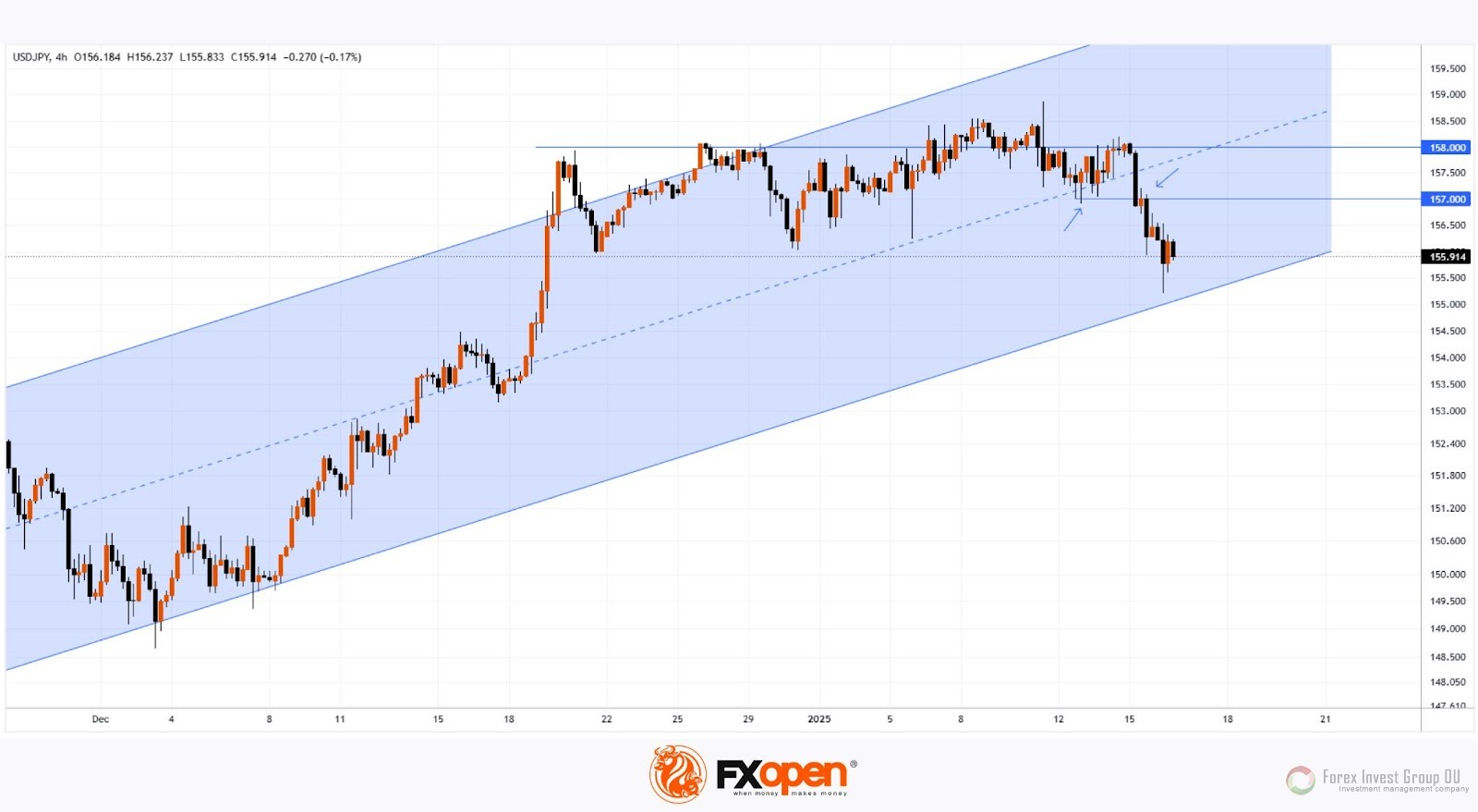 FxSignal 16-01-2025, 14:00 274 Аналитика, прогнозы валютного рынкаКак свидетельствует график USD/JPY, сегодня во время азиатской сессии курс опустился ниже 155.5 иен за доллар США – впервые с 19 декабря.