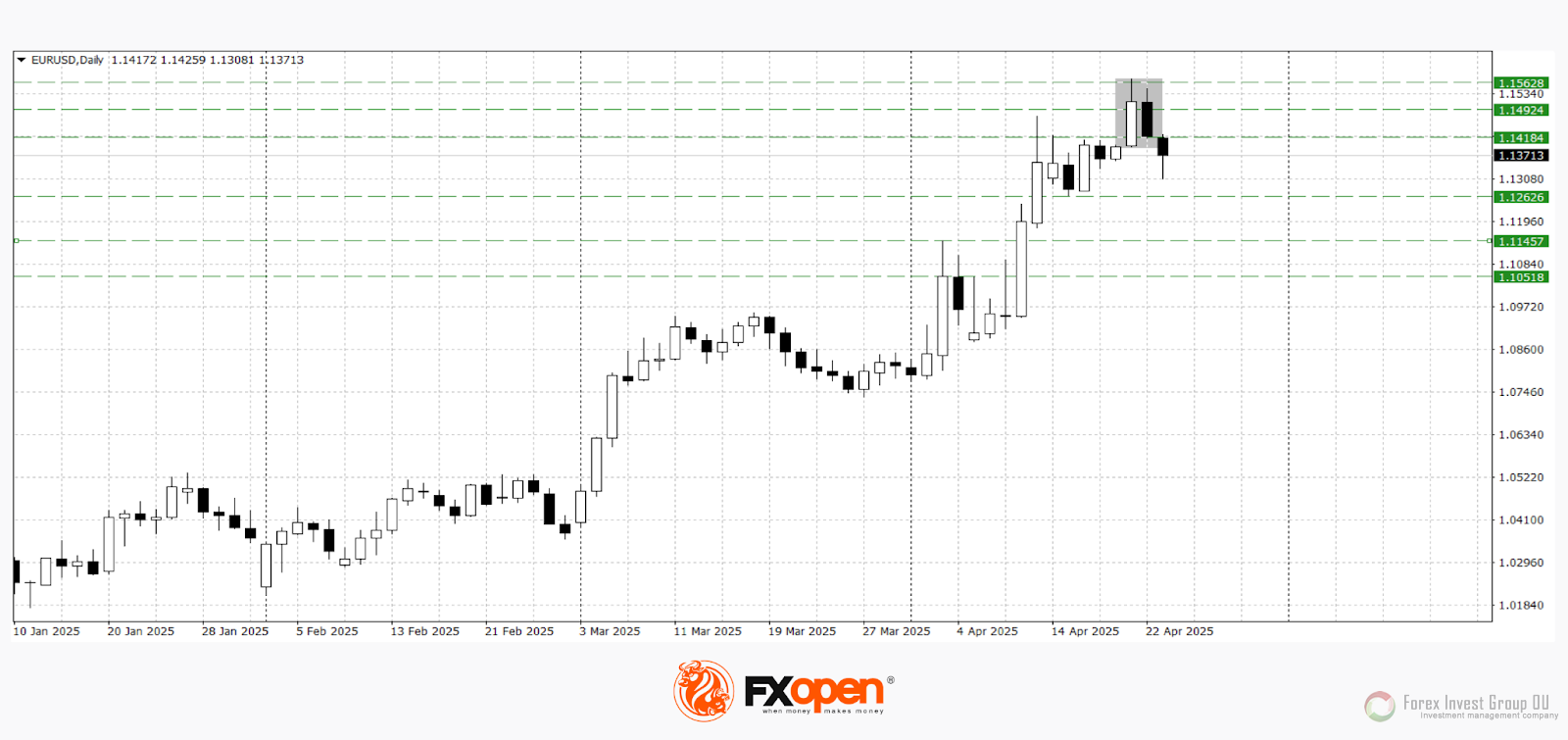 FxSignal 23-04-2025, 12:00 219 Аналитика, прогнозы валютного рынкаВ условиях глобальной экономической нестабильности и усиления тарифной войны валютные пары EUR/USD и GBP/USD демонстрируют уверенный рост. На фоне заявлений Дональда Трампа о возможном увольнении главы Федеральной резервной системы Джерома Пауэлла давление на американскую валюту усиливается. Это создает благоприятные условия для укрепления европейской и японской валют, а также британского фунта.