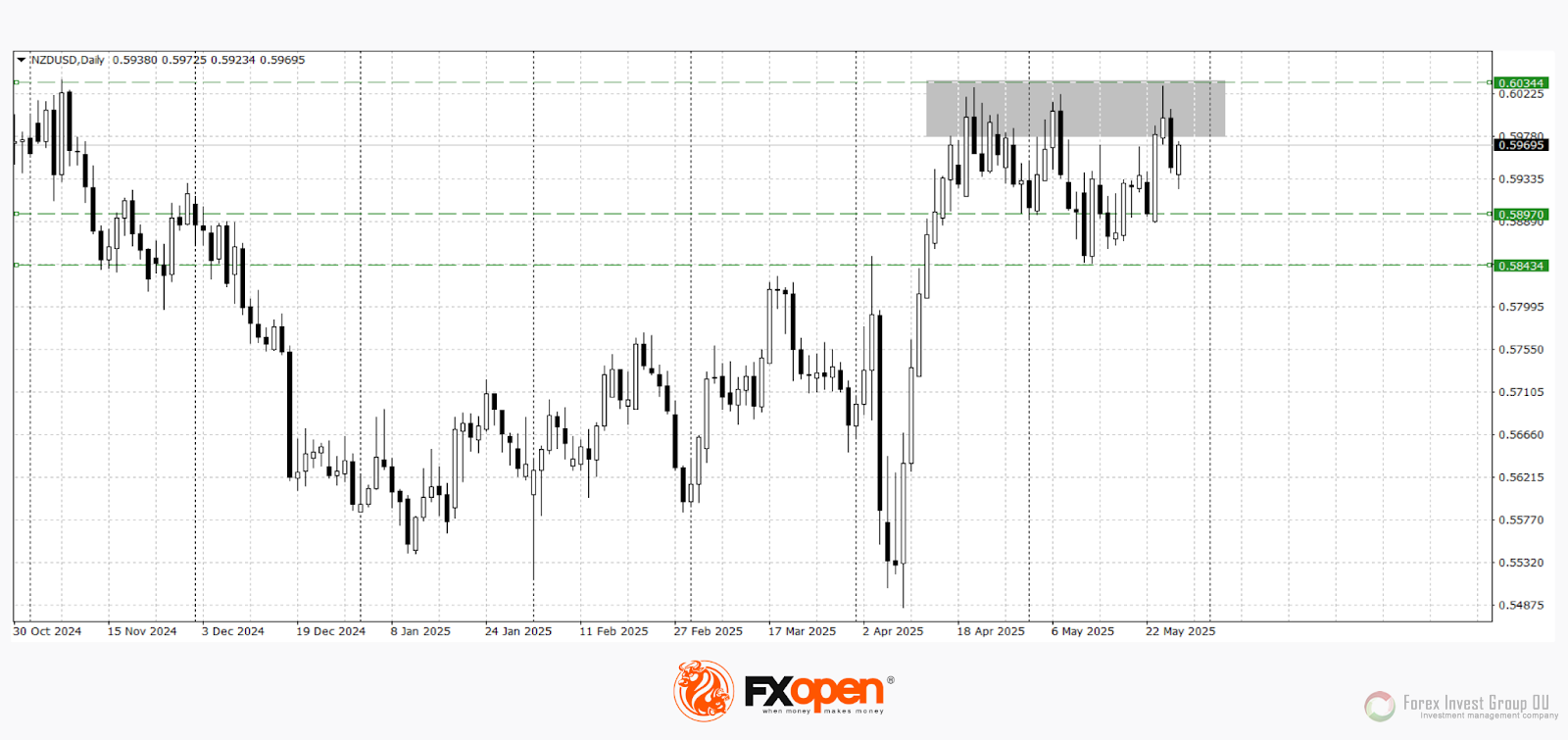 Пара NZD/USD снизилась до уровня 0.5920 после решения регулятора по ставке. Ближайшая поддержка находится на уровне 0.5900, и её пробой может привести к дальнейшему снижению пары. Возобновление роста возможно после уверенного укрепления выше 0.6340. Покупатели NZD/USD пытаются сломать данное сопротивление уже трижды за последние два месяца, но пока безуспешно.