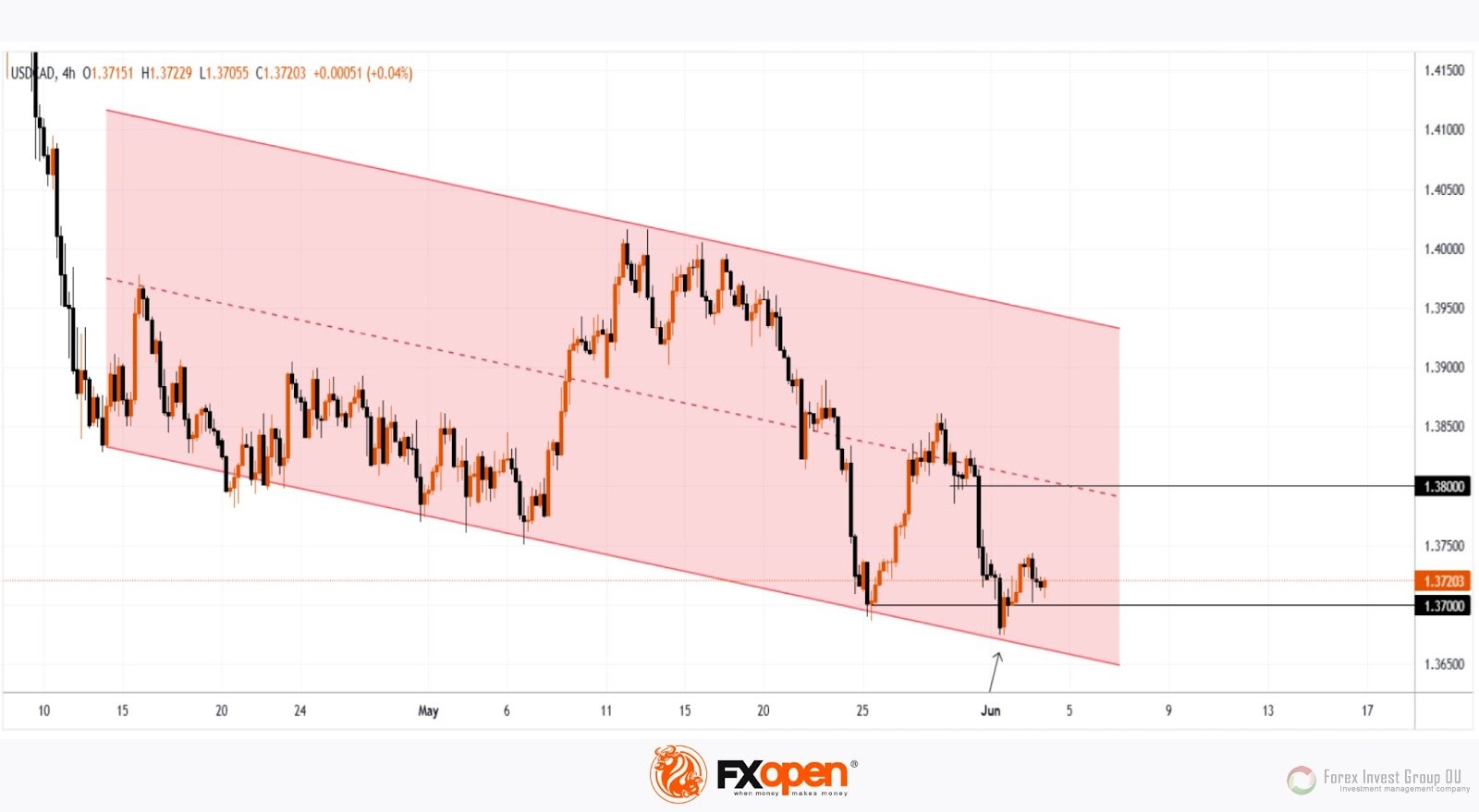 Эти колебания курса USD/CAD отражают настроения участников рынка накануне публикации важных новостей, намеченных на сегодня, 4 июня: