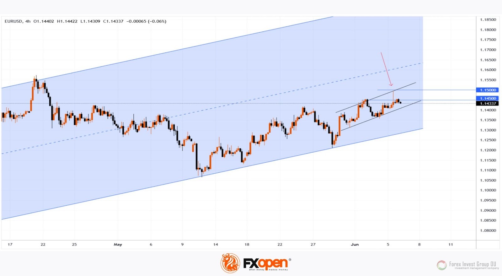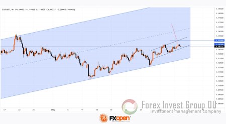 Фактически, на вчерашнем пике курс был очень близок к 1.1500, но по итогу на графике EUR/USD сформировалась свеча с длинной верхней тенью. Кроме того, сегодня утром в качестве сопротивления себя проявил уровень 1.1450.