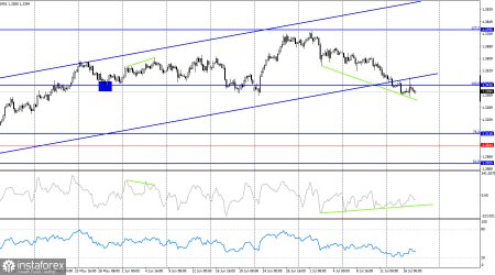 Сетки уровней Фибоначчи построены по 1,3371–1,3787 на часовом графике и по 1,3431–1,2104 на 4-часовом.