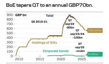 Банк Англии на прошлой неделе сохранил процентную ставку на уровне 4.0%, как и ожидалось, голоса разделились как 7/2, здесь никаких неожиданностей нет. Общие рекомендации остались без изменений, при этом Банк Англии вновь заявил, что «постепенный и осторожный подход к дальнейшему снятию ограничений денежно-кредитной политики остаётся целесообразным». Вопрос о корректировке программы количественного ужесточения (QT) вызвал дискуссию, поскольку у правительства серьезные проблемы с бюджетом на фоне роста процентных платежей по госдолгу. QT в итоге было замедлено до 70 млрд. фунтов, причем главный экономист Хью Пилл выступил за сохранение объема на £100 млрд, а Кэтрин Манн предлагала более резкое сокращение до £62 млрд.