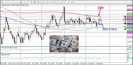 А с технической точки зрения, пара USD/JPY может найти поддержку вблизи пятничного в районе после решения Банка Японии, у 100-дневной ЕМА, которая проходит по цене 147,20. После чего следует круглый уровень 147,00, ниже которого цены ускоряя падение к поддержке 146,20.