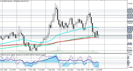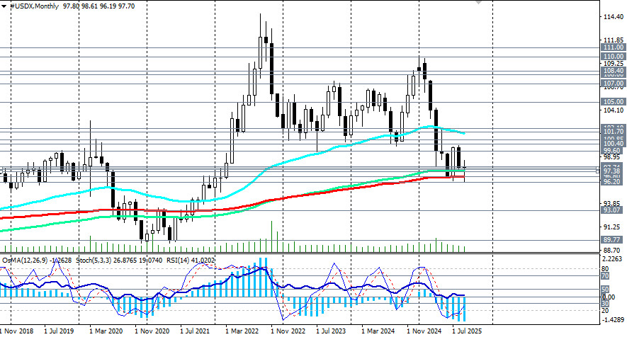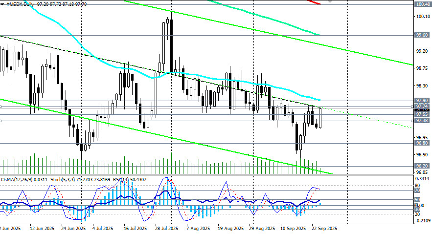 Публикации последних дней подтвердили замедление активности в производственном и сервисном секторах, но на уровне, соответствующем умеренному росту. Так, по данным S&P Global, деловая активность в США замедлилась в сентябре: производственный PMI опустился до 52,0 с 53,0, PMI для сферы услуг - до 53,9 с 54,5 месяцем ранее. Несмотря на относительное снижение, показатели остаются в зоне ускорения активности – выше отметки 50,0. При этом индекс цен производителей вырос до 62,6, что отражает рост затрат на фоне роста тарифов. Техническая картина На 4-часовом графике цена на фьючерсы USDX тестирует на пробой важный уровень сопротивления 97.74 (ЕМА200). Следующим важным сопротивлением, которое цене необходимо преодолеть, чтобы закрепиться в зоне краткосрочного рынка и сохранить бычий потенциал для роста к уровням 99.60, 100.40, 100.85, является 50-периодная скользящая на дневном графике USDX. Однако основным сценарием пока что остается снижение USDX. С технической точки зрения, переход индекса доллара USDX в зону глобального медвежьего рынка будет выглядеть пробоем стратегического уровня поддержки 96.80 (ЕМА200 на месячном графике) и дальнейшим снижением. В этом случае в долгосрочном периоде предпочтительными станут короткие позиции по доллару. Самым первым сигналом здесь может стать отскок от уровня сопротивления 97.74 и пробой краткосрочного уровня поддержки 97.38 (ЕМА200 на 1-часовом графике). Вывод Доллар остается уязвимым, а фундаментальный фон складывается не в его пользу. Слабые данные по рынку труда, несмотря на устойчивую инфляцию, подталкивают ФРС к более агрессивному смягчению политики. В зоне 98.00 – 97.80 наиболее вероятны отскок и возобновление снижения USDX. + [i]открыть торговый счет + зарегистрироваться в системе копирования сигналов + инвестировать в ПАММ-системеМатериал предоставлен компанией InstaForex - www.instaforex.com