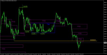 CHOCH – слом трендовой структуры. Liquidity – Ликвидность, Stop Loss трейдеров, которые маркет-мейкеры используют для набора своих позиций. FVG – Область ценовой неэффективности. Цена очень быстро проходит такие области, что указывает на полное отсутствие одной из сторон на рынке. В последствии цена имеет свойство возвращаться и получать реакцию от таких областей. IFVG – Инвертированная область ценовой неэффективности. После возврата к такой области, цена не получает от нее реакцию, а импульсно пробивает, а затем тестирует ее с другой стороны. OB – Ордер-блок. Свеча, на которой маркет-мейкер открывал позицию с целью забора ликвидности для формирования собственной позиции в противоположном направлении.Материал предоставлен компанией InstaForex - www.instaforex.comНовость предоставлена компанией