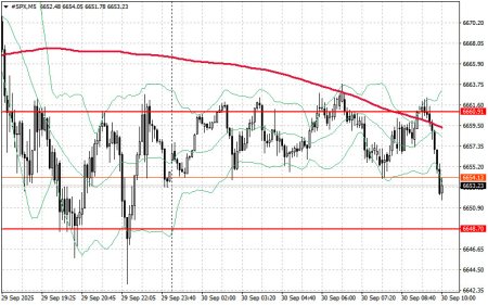 По итогам вчерашнего дня американские фондовые индексы закрылись ростом. S&P 500 вырос на 0,26%, а Nasdaq 100 прибавил 0,48%. Промышленный Dow Jones подскочил на 0,15%. Сегодня азиатские индексы выросли на 0,4% и готовы продемонстрировать шестой месяц роста подряд, что станет самой продолжительной серией роста с 2018 года. Очевидно, что рынки также не спешат сокращать риски после нескольких предыдущих эпизодов угроз закрытия экономики США. Этот неугасающий оптимизм, впрочем, подкреплен рядом факторов, выходящих за рамки сезонной стабильности. В первую очередь, это ожидание дальнейших мер стимулирования экономики, направленных на поддержание внутреннего спроса и компенсацию возможных внешних шоков. Инвесторы также пристально следят за развитием технологического сектора, который демонстрирует уверенный рост, подпитываемый инновациями в области искусственного интеллекта и возобновляемой энергии. Вчера вице-президент Джей Ди Вэнс заявил, что, по его мнению, правительство США находится на пути к прекращению работы после того, как последняя отчаянная встреча президента Дональда Трампа с высшими лидерами Конгресса перед крайним сроком 1 октября завершилась без удовлетворения требований демократов. Очевидно, что многие федеральные операции будут приостановлены, а сотрудники будут отправлены в неоплачиваемый отпуск или уволены, если сегодня законодатели не смогут достичь соглашения к моменту окончания текущего финансового года. Тем временем, спад в производственной сфере Китая продолжается уже шестой месяц, что является самым продолжительным спадом с 2019 года, поскольку экономика перешла в стадию замедления после резкого роста в начале года. Австралийский доллар вырос после того, как центральный банк Австралии принял широко ожидаемое решение сохранить ключевую ставку без изменений, вновь заявив, что он по-прежнему осторожен в оценке перспектив и что будущие действия будут определяться экономическими данными. Что касается геополитических событий, Трамп и премьер-министр Израиля Биньямин Нетаньяху заявили, что согласовали план из 20 пунктов, призванный положить конец войне в секторе Газа, хотя перспективы мира остаются неясными без прямого участия ХАМАС. Что касается технической картины S&P500, то основная задача покупателей на сегодня будет заключаться в преодолении ближайшего сопротивления $6660. Это поможет показать рост, а также откроет возможность к рывку на новый уровень $6672. Не менее приоритетной задачей быков будет и контроль над $6682, что укрепит позиции покупателей. В случае движения вниз на фоне снижения спроса аппетита к риску, покупатели просто обязаны заявить о себе в районе $6648. Пробой быстро столкнет торговый инструмент назад на $6638 и откроет дорогу к $6630.Материал предоставлен компанией InstaForex - www.instaforex.com