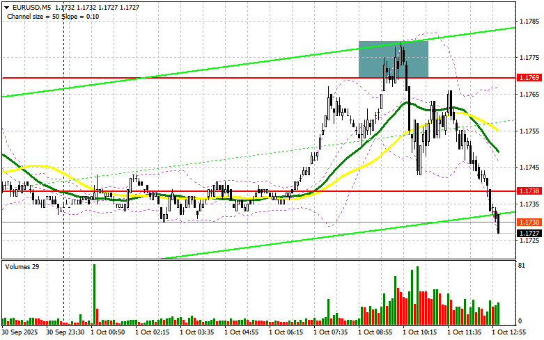 В своем утреннем прогнозе я обращал внимание на уровень 1.1769 и планировал от него принимать решения по входу в рынок. Давайте посмотрим на 5-минутный график и разберемся с тем, что там произошло. Рост и формирование ложного пробоя в районе 1.1769 привели к хорошей точке входа в короткие позиции, что вылилось в падение пары более чем на 40 пунктов. На вторую половину дня техническая картина была пересмотрена.Для открытия длинных позиций по EURUSD требуется:Данные по активности производственного индекса стран еврозоны были пересмотрены в лучшую сторону, но по отношению к прошлому месяцу показатель все же снизился, что и оказало давление на евро в первой половине дня. В ходе американской сессии ожидаются данные по изменению числа занятых от ADP и производственный индекс США от ISM. В случае сильных показателей давление на пару только увеличится. Поэтому лишь формирование ложного пробоя в районе 1.1713 будет поводом для открытия новых длинных позиций в расчете на обновление сопротивления 1.1749, еще утром выступавшего в роли поддержки. Прорыв и обратный тест этого диапазона станут подтверждением правильной точки вход с выходом к области 1.1777. Самой дальней целью будет уровень 1.1818, где буду фиксировать прибыль. При варианте снижения EUR/USD и отсутствия активности в районе 1.1713, пара вернется к падению. Медведи в таком случае сумеют дотянуться до 1.1680. Лишь после формирования там ложного пробоя собираюсь действовать на покупку евро. Открывать длинные позиции сразу на отскок планирую от 1.1650 с целью восходящей коррекции в 30-35 пунктов внутри дня.Для открытия коротких позиций по EURUSD требуется: Продавцы проявили себя в первой половине дня и теперь лишь очень слабые данные по США вернут в рынок покупателей евро. В ином случае давление на пару только увеличится. При плохой статистике лишь формирование ложного пробоя в районе 1.1749 будет для меня поводом для коротких позиций с целью снижения к уровню 1.1713. Прорыв и закрепление ниже этого диапазона станут подходящим вариантом на продажу уже с движением в район 1.1680. Самой дальней целью выступит область 1.1650, где буду фиксировать прибыль. В случае движения вверх EUR/USD во второй половине дня, а также отсутствия активных действий медведей в районе 1.1740, где проходят средние скользящие, покупатели получат шанс на более крупный рывок, что откроет дорогу в район следующего сопротивления 1.1777, образованного по итогам первой половины дня. Продавать там буду только после неудачного закрепления. Открывать короткие позиции сразу на отскок я планирую от 1.1818 с целью нисходящей коррекции в 30-35 пунктов.Рекомендую ознакомиться:В COT-отчете (Commitment of Traders) за 23 сентября наблюдался рост коротких позиций и сокращение длинных. В COT-отчете указано, что длинные некоммерческие позиции сократились на 789 до уровня 252 472, в то время как короткие некоммерческие позиции выросли на 2 625 до уровня 138 127. В результате спрэд между длинными и короткими позициями сократился на 33 691.Сигналы индикаторов:Средние скользящие