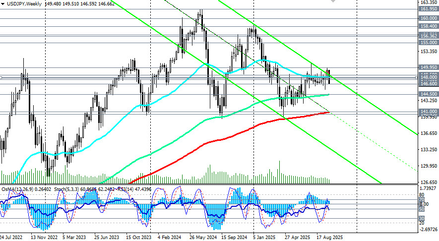 Недавно Банк Японии подтвердил свое стремление постепенно адаптироваться к новым экономическим условиям, уменьшая объемы покупки активов и делая шаги навстречу повышению ключевой ставки. Эти меры поддерживают позитивные настроения среди японских инвесторов и стимулируют приток капитала в страну. Хотя международные рынки остаются нестабильными, макроэкономические показатели Японии демонстрируют устойчивость внутреннего спроса и некоторое улучшение условий ведения бизнеса. Так, сентябрьский индекс совпадающих индикаторов оказался лучше прогнозов (35.3 против 35.2), число разрешений на строительство резко выросло (+38.9%), хотя количество возведённых домов снизилось. Индикатор настроений крупного бизнеса Tankan в 3-м квартале вырос с до 14,0 с 13,0 ранее. На последнем заседании регулятор сохранил ставку на уровне 0.50%, но продолжил сокращать покупки облигаций, отмечая восстановление экономики при сильном внутреннем спросе, несмотря на слабость внешнеторгового сектора. Хотя инфляция остаётся выше целевого уровня 2.0% (в диапазоне 3,0–3,5%), достижение этой цели пока под вопросом. Некоторые члены Совета BoJ сделали заявления, намекающие на возможное повышение стоимости заимствований, и теперь инвесторы ожидают, что на заседании 30 октября BoJ повысит ставку на 25 базисных пунктов, до 0.75%, что может продолжить долгосрочный нисходящий тренд по USD/JPY. Основные факторы давления на доллар