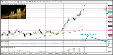 С технической точки зрения, рост цен выше круглого уровня $3900 является новым стимулом для быков, подтверждает краткосрочный позитивный прогноз. Однако, RSI - дневной индекс относительной силы держится значительно выше отметки 70, показывая перекупленность, это требует осторожности для трейдеров настроенных на покупки.