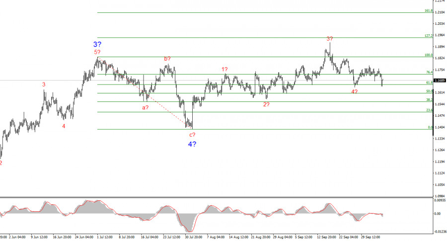 Анализ EUR/USD. 6 октября. Политический кризис во Франции, и евро снова падает Инфляция устраивает ЛагардВолновая картина по EUR/USD: