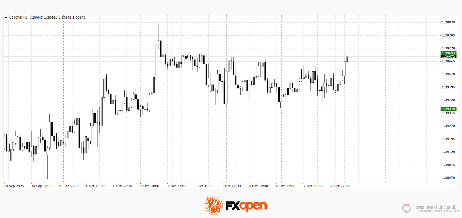 Пара USD/CAD остаётся вблизи ключевых уровней, отражая консолидацию доллара США, который в последние дни торгуется без выраженного направления. Дополнительное влияние на настроения оказывает угроза шатдауна в США: возможное прекращение работы правительства может задержать публикацию важной макроэкономической статистики, что усиливает неопределенность относительно дальнейших действий ФРС. В фокусе внимания инвесторов будет выступления представителей ФРС (включая Логана, Дали и Кашкари), публикация протоколов FOMC, а также строительные данные и энергетическая статистика. Фьючерсы на ставку по федеральным фондам указывают на 95%-ную вероятность понижения ставки в октябре, однако участники рынка сохраняют осторожность, ожидая новых сигналов. Доллар удерживает позиции, а иена остаётся главным аутсайдером недели на фоне политических изменений в Японии.