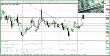 Индекс доллара (DXY), отслеживающий курс доллара к корзине валют, в пятницу опустился ниже круглого уровня 99,00, вернувшись к уровню 98,80.Ожидания двух снижений ставок ФРС до конца года и продолжительная приостановка работы правительства, всё же повлияло на динамику доллара США. В четверг Сенат в седьмой раз отверг предложения по продвижению альтернативных законопроектов, а дальнейшие голосования запланированы не ранее следующей недели, когда, как ожидается, заседания верхней палаты возобновятся во вторник. Плюс к этому, Трамп заявил о намерении с 1 ноября ввести дополнительные пошлины в размере 100% на китайские товары, угрожая вывести тарифы на уровень, который, по предупреждениям обеих сторон в начале года, может привести к фактическому разделению экономик. Кроме того, он объявил о планах ужесточить экспортный контроль над критически важным программным обеспечением. После чего доллар США потерпел поражение.