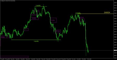 CHOCH – слом трендовой структуры. Liquidity – Ликвидность, Stop Loss трейдеров, которые маркет-мейкеры используют для набора своих позиций. FVG – Область ценовой неэффективности. Цена очень быстро проходит такие области, что указывает на полное отсутствие одной из сторон на рынке. В последствии цена имеет свойство возвращаться и получать реакцию от таких областей. IFVG – Инвертированная область ценовой неэффективности. После возврата к такой области, цена не получает от нее реакцию, а импульсно пробивает, а затем тестирует ее с другой стороны. OB – Ордер-блок. Свеча, на которой маркет-мейкер открывал позицию с целью забора ликвидности для формирования собственной позиции в противоположном направлении. Материал предоставлен компанией InstaForex - www.instaforex.comНовость предоставлена компанией