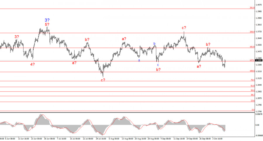 Для британца следующая неделя будет довольно интересной. Напомню, что примерно в середине каждого месяца в Великобритании выходит большая часть экономической статистики. Волновая разметка GBP/USD также усложнилась из-за последнего снижения котировок и теперь тоже имеет вид трех последовательных трехволновых структур. То есть волновые картины евро и фунта в данное время полностью совпадают, что хорошо. По британцу мы также наблюдаем построение третьей волны в текущей структуре, а новостной фон последних недель не был причиной укрепления американской валюты. Или же рынок просто игнорировал его. Поэтому я считаю, что участники рынка накопили достаточно причин для того, чтобы начать повышение спроса на инструмент. Забегая немного вперед, замечу, что в пятницу Дональд Трамп объявил о повышении пошлин для Китая на 100%, поэтому рынок получил еще один повод возобновить бегство от доллара. Но вернемся к британским событиям и новостям. На следующей неделе в Великобритании выйдут отчеты по безработице, заработным платам, числу безработных, ВВП, промышленному производству. Также состоится выступление главного экономиста Банка Англии Хью Пилла. Каждое из этих событий по-своему интересное. ВВП, промышленное производство, как наиболее важные отчеты, вновь ожидаются со слабыми значениями, а уровень безработицы может продолжить расти. Поэтому, на мой взгляд, шансы на поддержку британца британской статистикой невелики. От Хью Пилла можно ожидать намеков на следующий раунд смягчения денежно-кредитной политики BoE. Напомню, что изначально Британский регулятор планировал четыре раунда снижения ставки на 2025 год, три – проведены. Остается четвертый, но инфляция в Британии активно растет и уже в два раза превышает целевую отметку регулятора. Следовательно, я считаю, что четвертого раунда может не быть вовсе, а Эндрю Бейли и Хью Пилл должны дать понять рынку, намерен ли регулятор продолжать смягчение, несмотря на высокую инфляцию. Американский новостной фон будет иметь вновь приоритетное значение для рынка, но экономической статистики будет мало. «Шатдаун» в США продолжается, а значит большая часть отчетов задерживается до завершения «паузы».